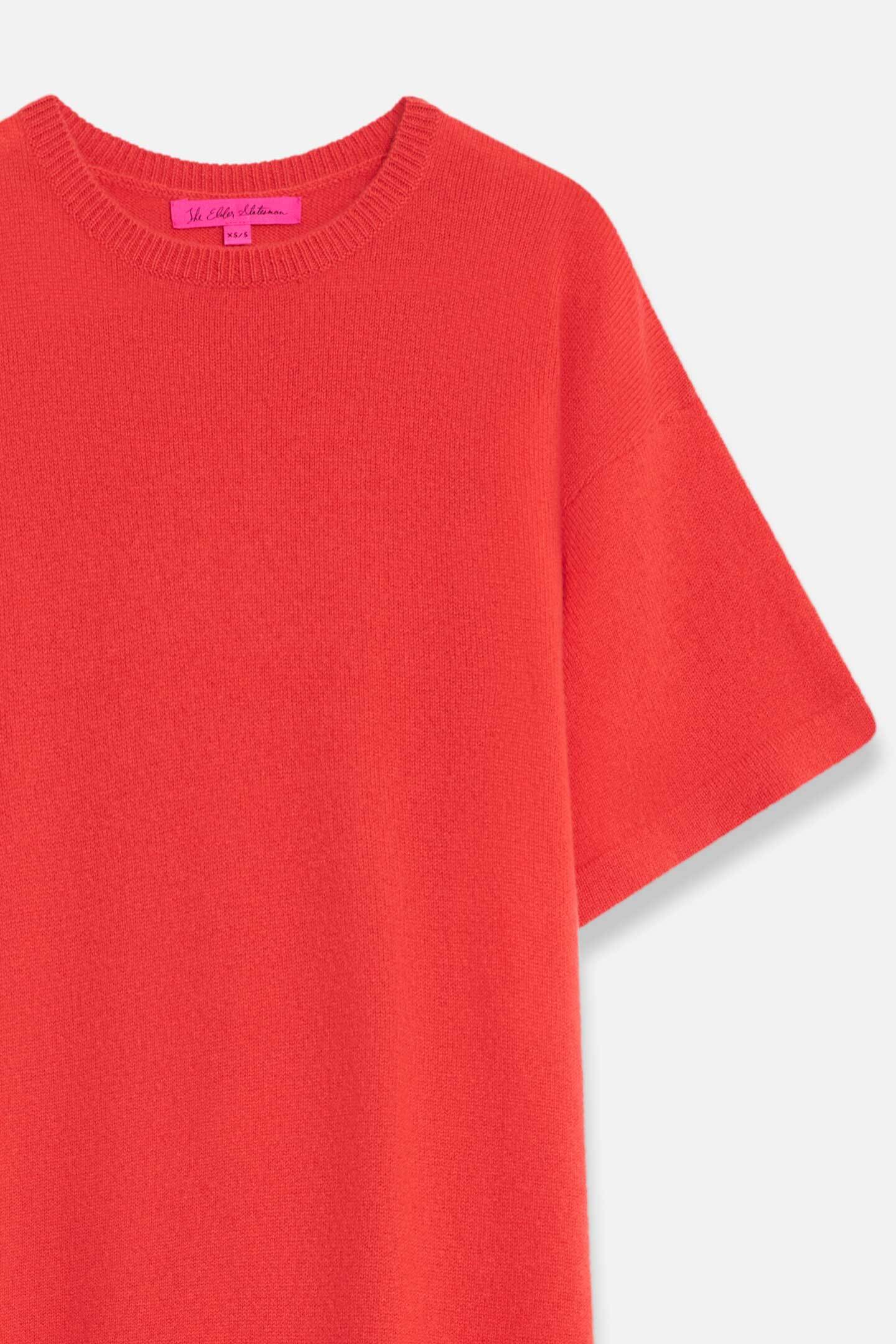 Floor-length short-sleeve dress in mediumweight cashmere with a crewneck collar and oversized fit.