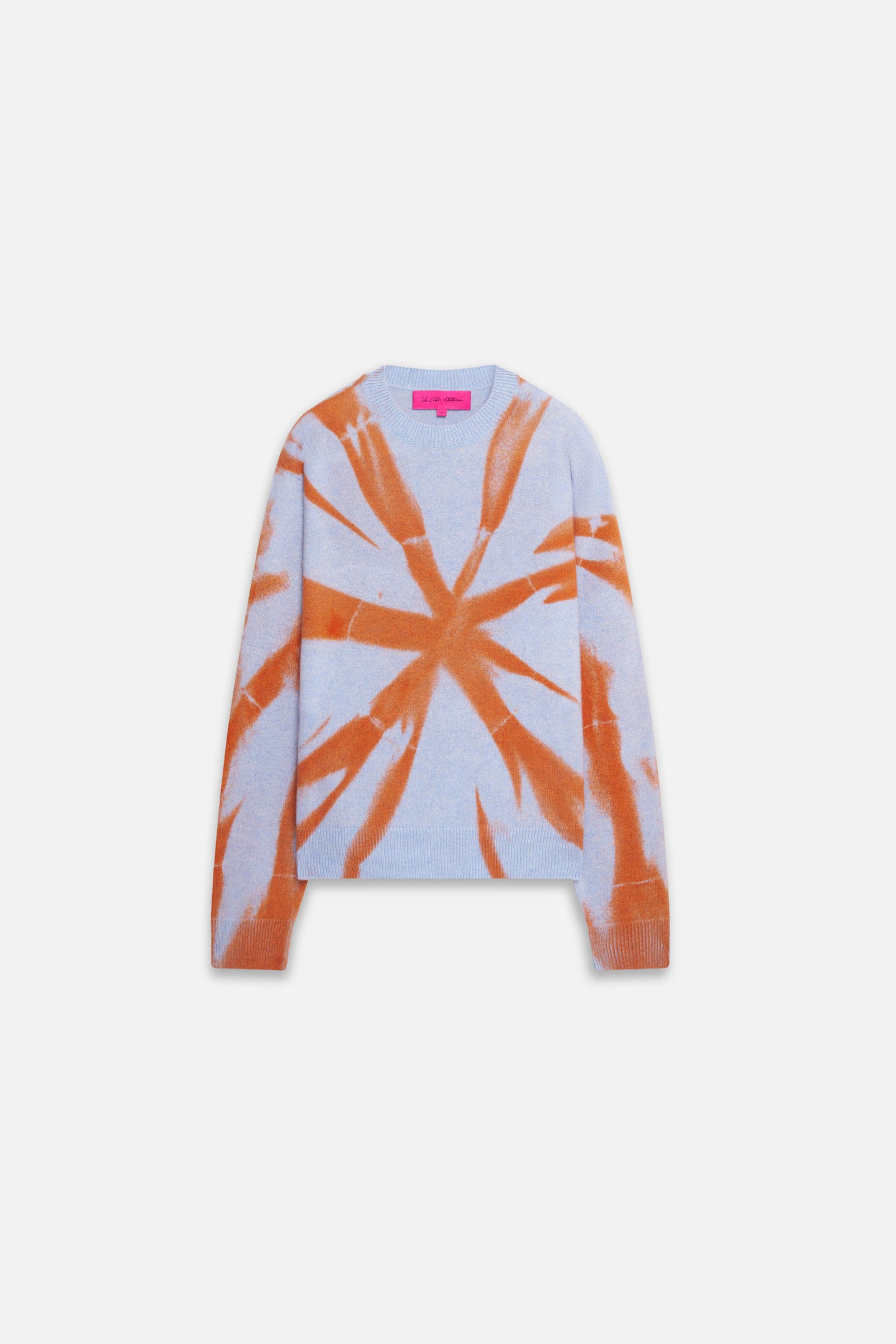 Crewneck in mediumweight cashmere with a hand-dyed starburst design in a seasonal colorway.