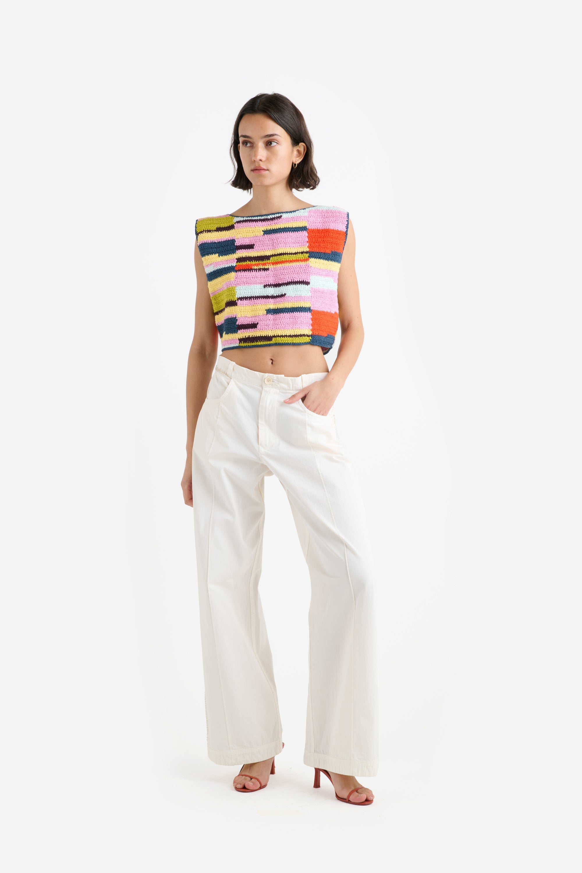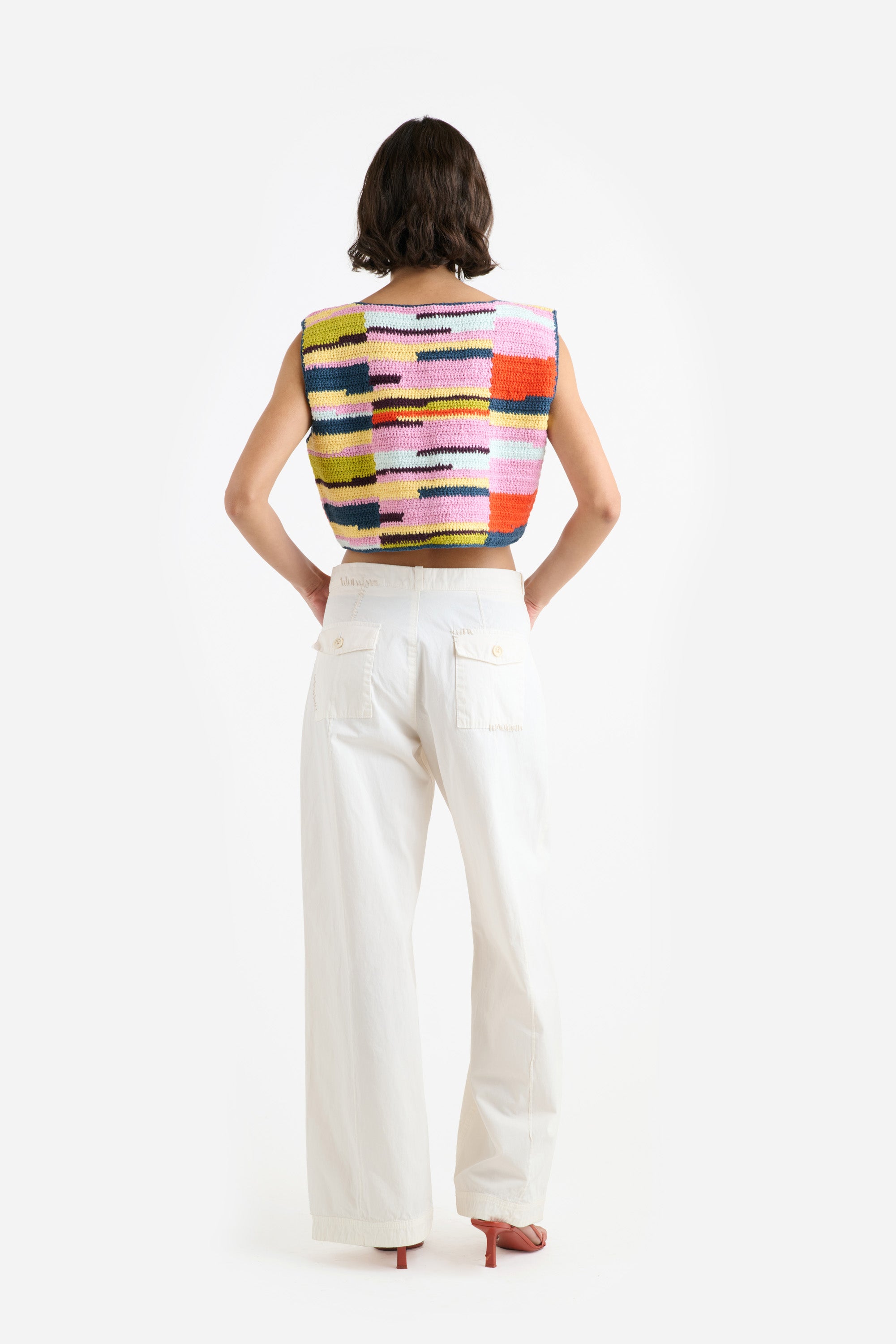 High-rise chino pants in cotton with wide-leg and side slash pockets.